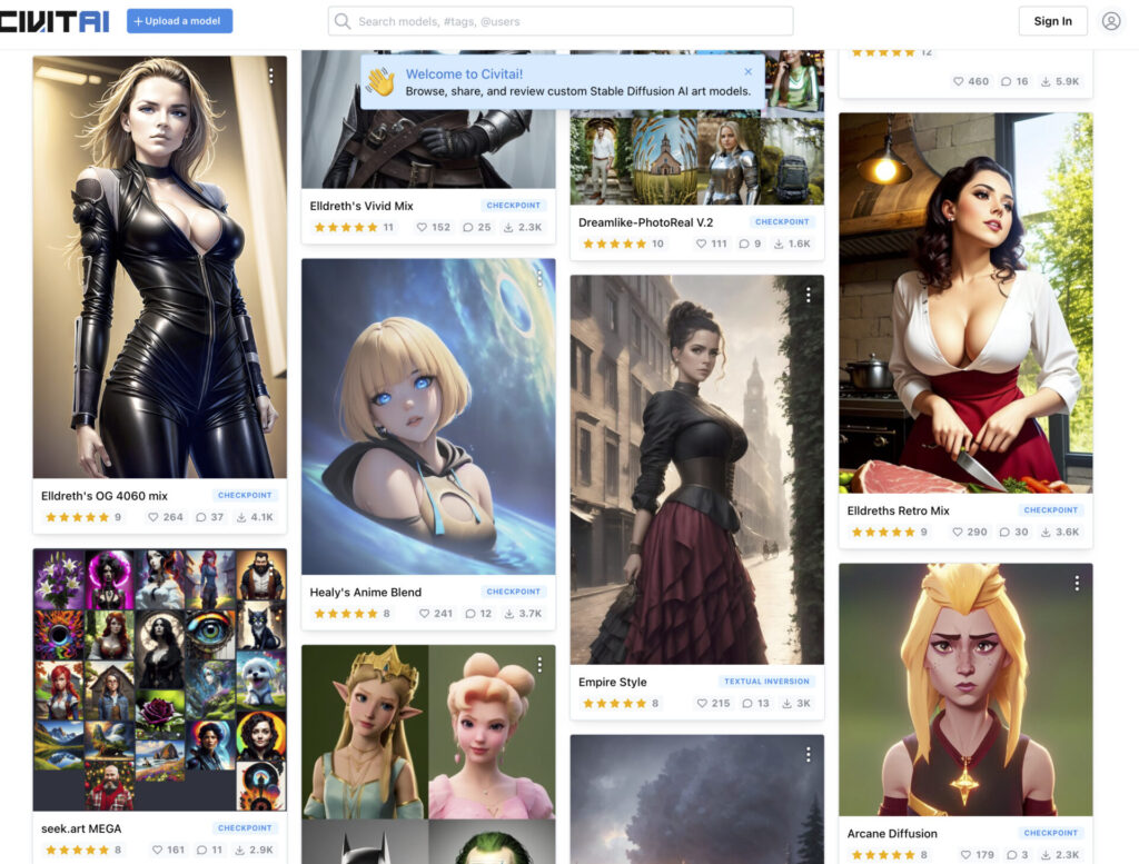 Có lẽ không cần nói nhiều các bạn cũng tự hình dung được trang web này có nhiều model đến mức nào khi nhìn vào trang chủ, hãy truy cập vào link này : https://civitai.com