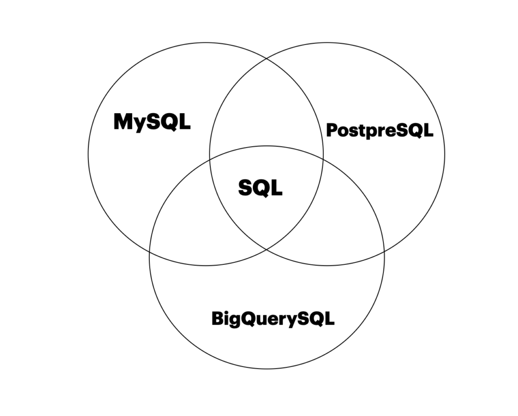 Tương tự như trường hợp tiếng Việt, trường hợp SQL cũng vậy. Dù có nhiều điểm khác nhau khi sử dụng MySQL, Postgre hay Bigquery, cả 3 ngôn ngữ SQL trên các loại DBMS này đều chia sẽ một số điểm chính ví dụ như.