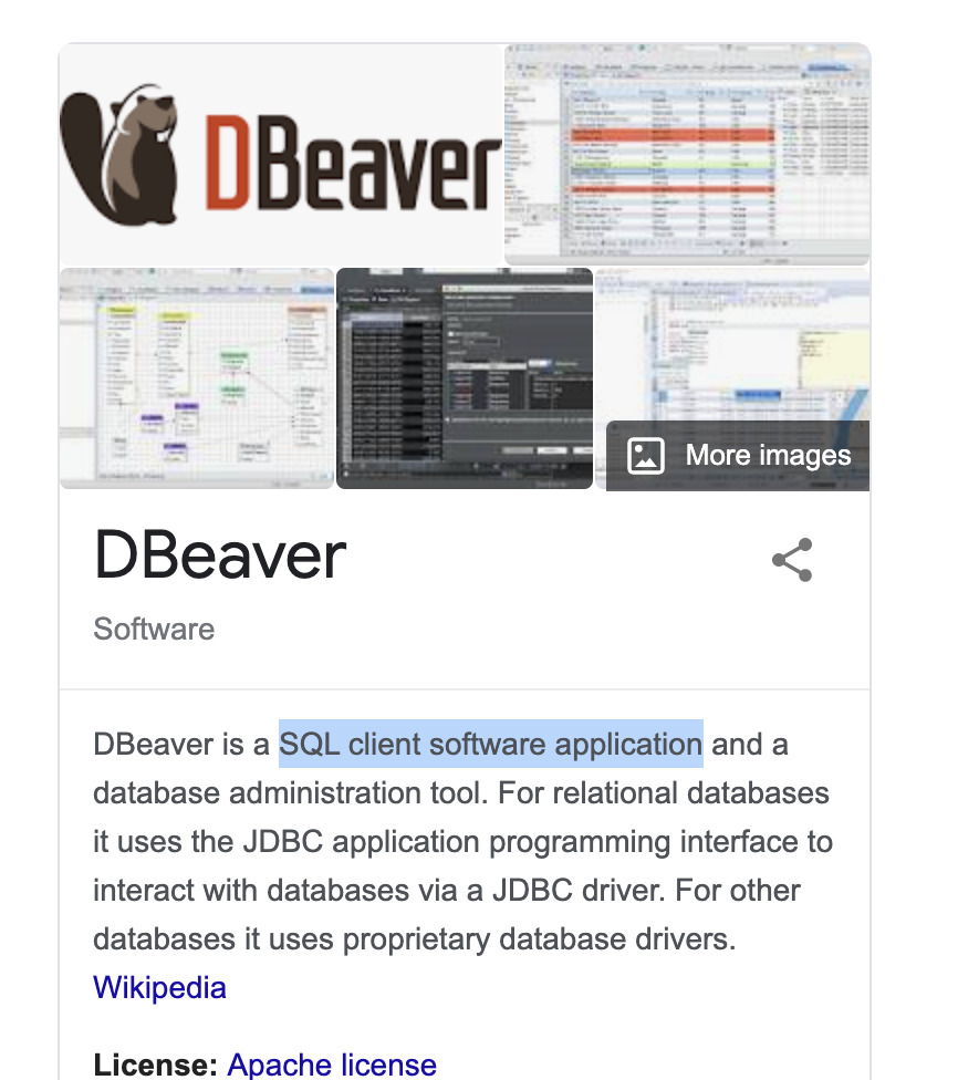 - DBeaver: https://dbeaver.io/