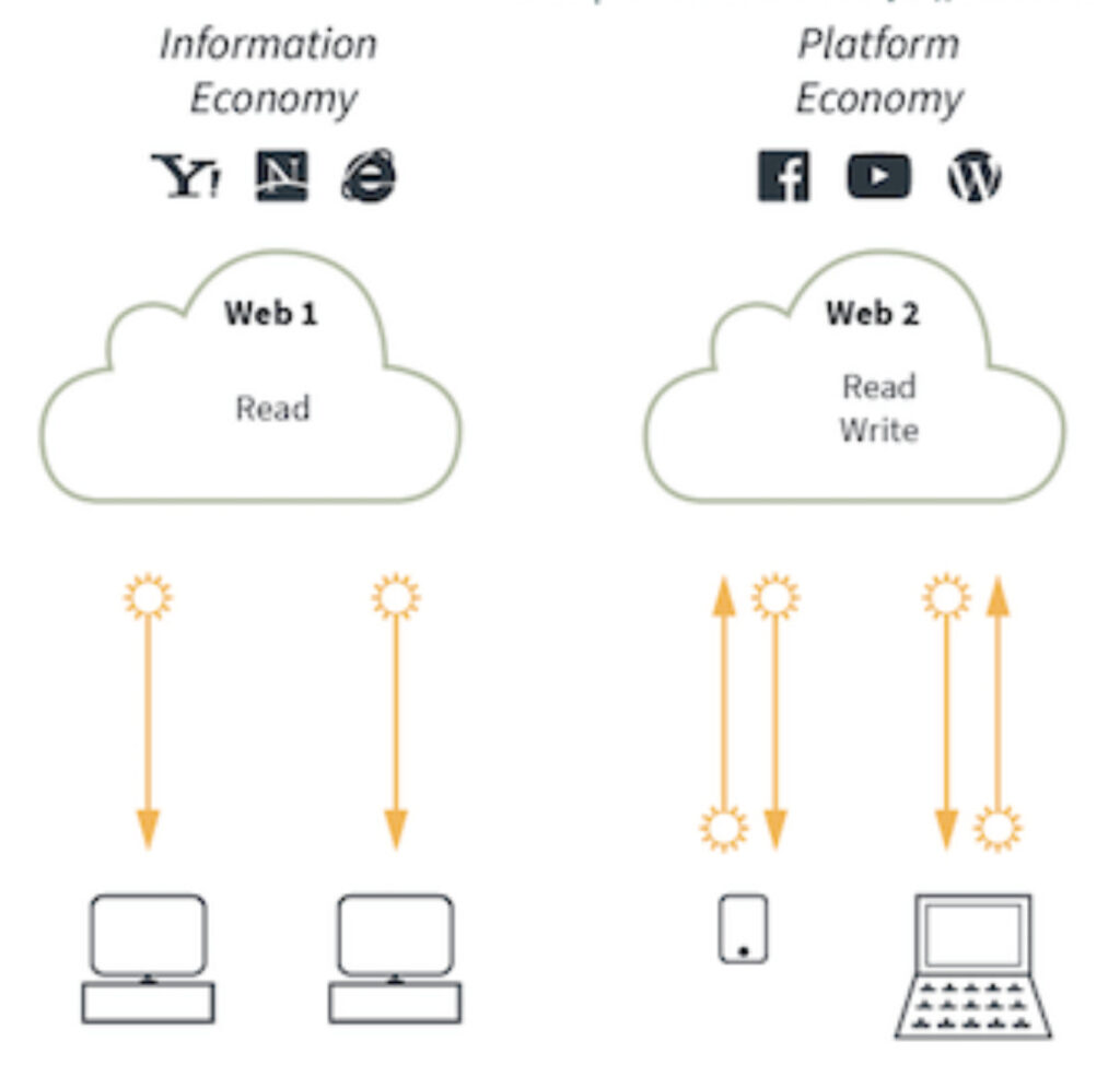 Ở góc độ người dùng chúng ta đã đưa thông tin cho các công ty công nghệ lớn, đã sử dụng dịch vụ của họ như những dịch vụ thiết yếu hằng ngày và tạo ra rất nhiều lợi nhuận cho họ. Đổi lại, các công ty web 2.0 lại kiểm soát thông tin, hạn chế sự tự do của các cá nhân, áp đặt tiêu chuẩn riêng của họ, tối đa hóa lợi nhuận bất chấp đạo đức. Điều này đi ngược lại hoàn toàn tinh thần tự do, rộng mở trước đây của internet ( giai đoạn 2000s ).