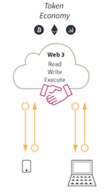 Đây là phần mà sẽ có liên quan smart contract và blockchain. Đối với web 3.0 chúng ta cần một hệ thống ở đó mà người dùng có thể tự do quyết định cách “thực thi” code trên dữ liệu mà họ nhập (write) và nhận (read) được. Đưa quyền sở hữu dữ liệu thực sự trở về tay người dùng cuối.