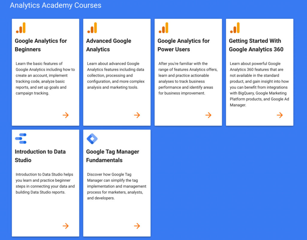Ngoài Google Analytics, bạn còn được học cách sử dụng Google Data Studio và Google Tag Manager hoàn toàn miễn phí. Ngay từ “chính chủ” Google. Vậy tại sao phải học ở nơi nào khác chứ?