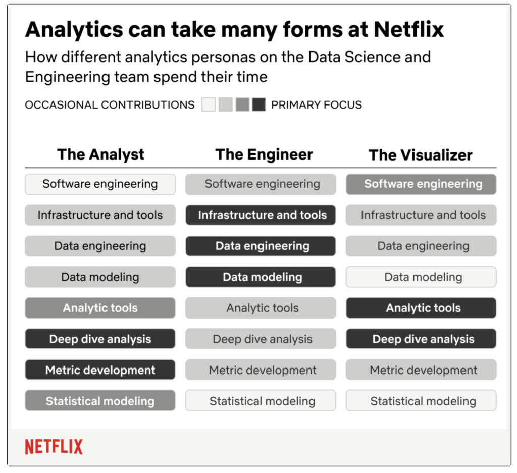 Đấy là góc nhìn của một vị trí cụ thể, còn toàn thể thì như thế nào, chúng ta lại có bài post này. Mô tả về các vị trí mà một data guy có thể đảm nhận tại netflix